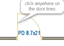 - Click anywhere on the door swing line OR on the door dimension text, and the blue arrow appears
