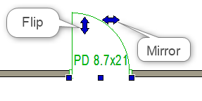 - Click on these arrows to Mirror the door swing and Flip the door direction / orientation.