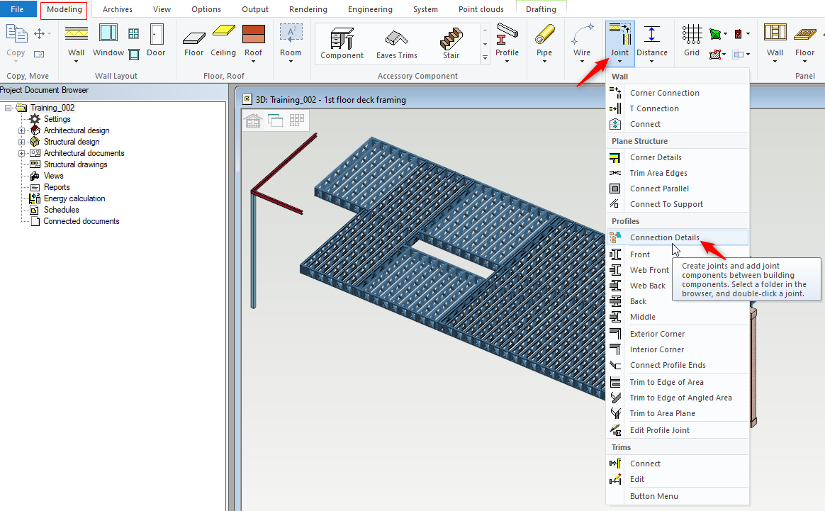 Before engineering the Floor Trusses, few connections need to be manually defined. In this scenario we have a PFC beam floor trusses abutting to beam need connections.