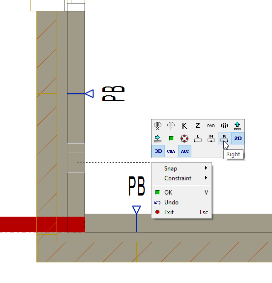 This contextual menu also lets you to manipulate 'Cut Out Width' of 'Panel Break' by selecting 'PAR'. While you in contextual menu, you can hover over each image ( hold the cursor for 1 to 2 second ), will display it's relative auxiliary function. You can select an auxiliary function even in the middle of selecting a wall point.