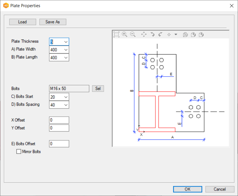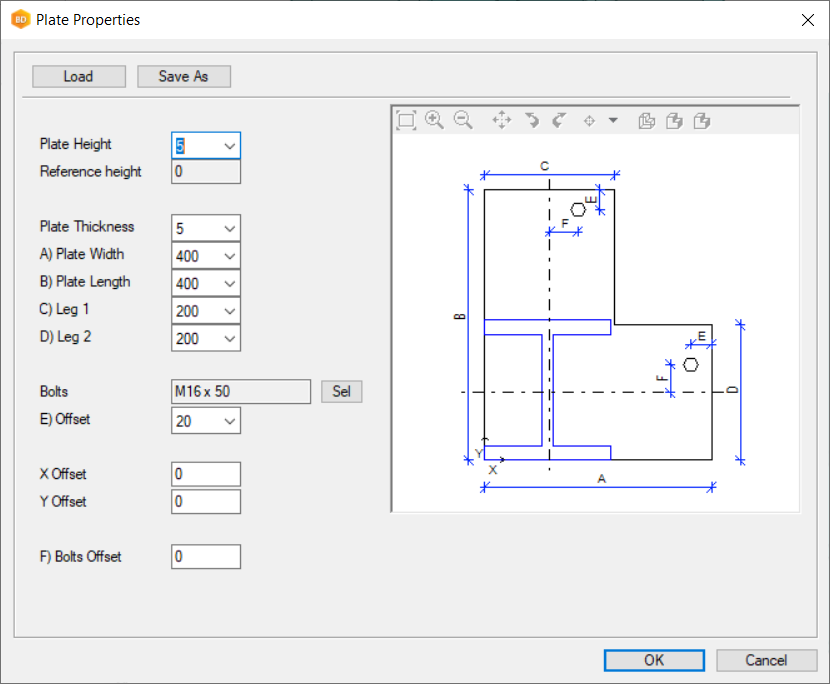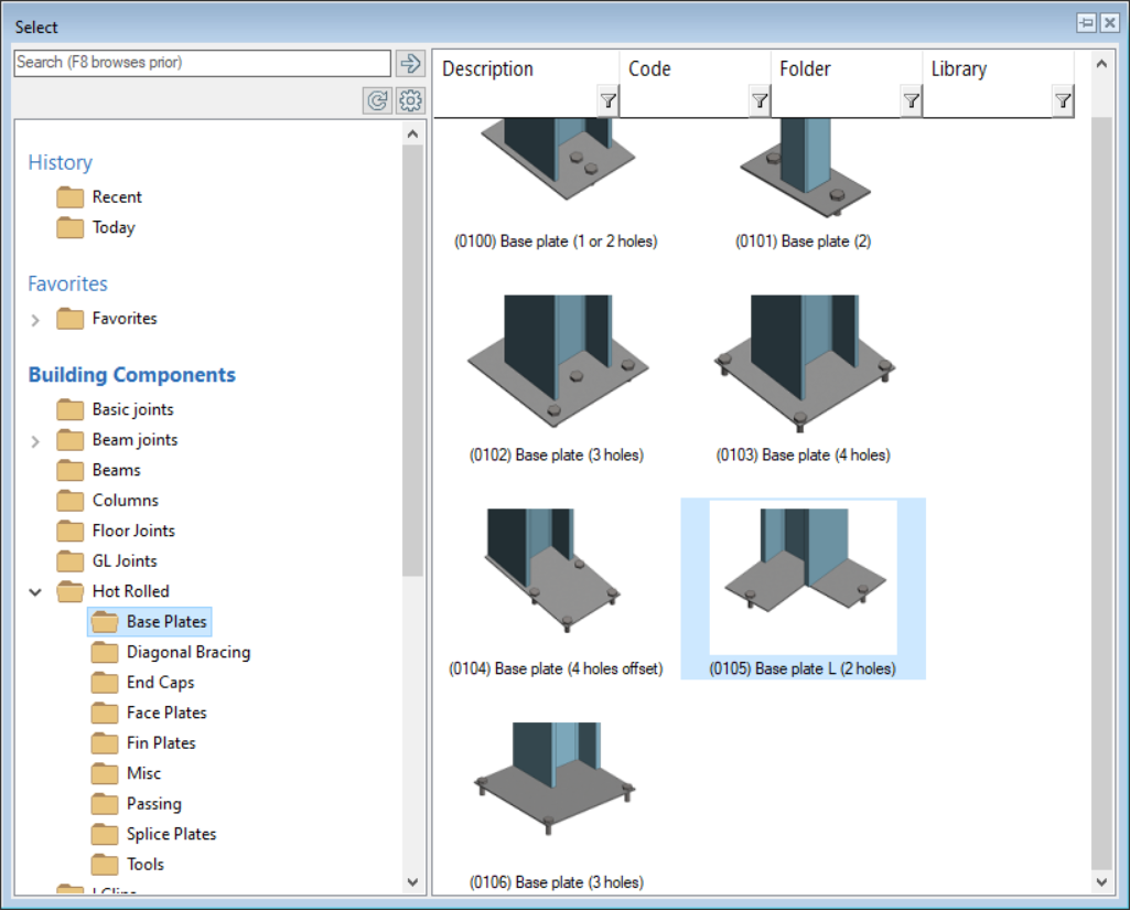 • Go to  ‘Hot Rolled’ → ‘Base Plates’ folder. Click on the ‘(0105) Base Plate L (2 holes)