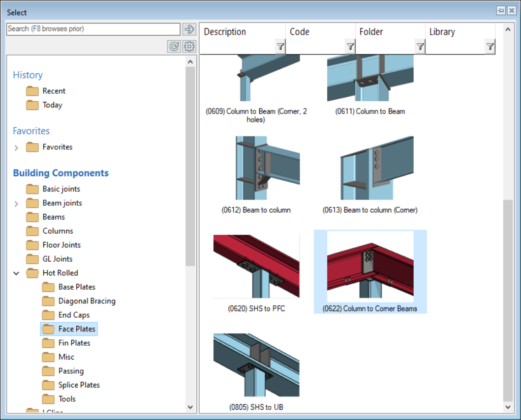• Go to  ‘Hot Rolled’ → ‘Face Plate’ folder. Click on the ‘(0622) Column to Corner Beams