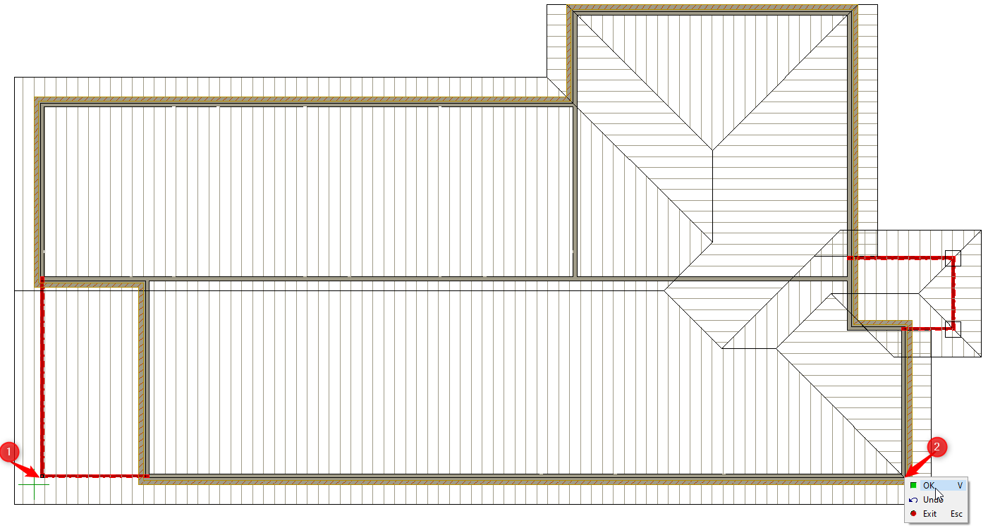Now Vertex prompts you to ‘Select below slopes’.This means you need to define the lower extent of the roof envelope.