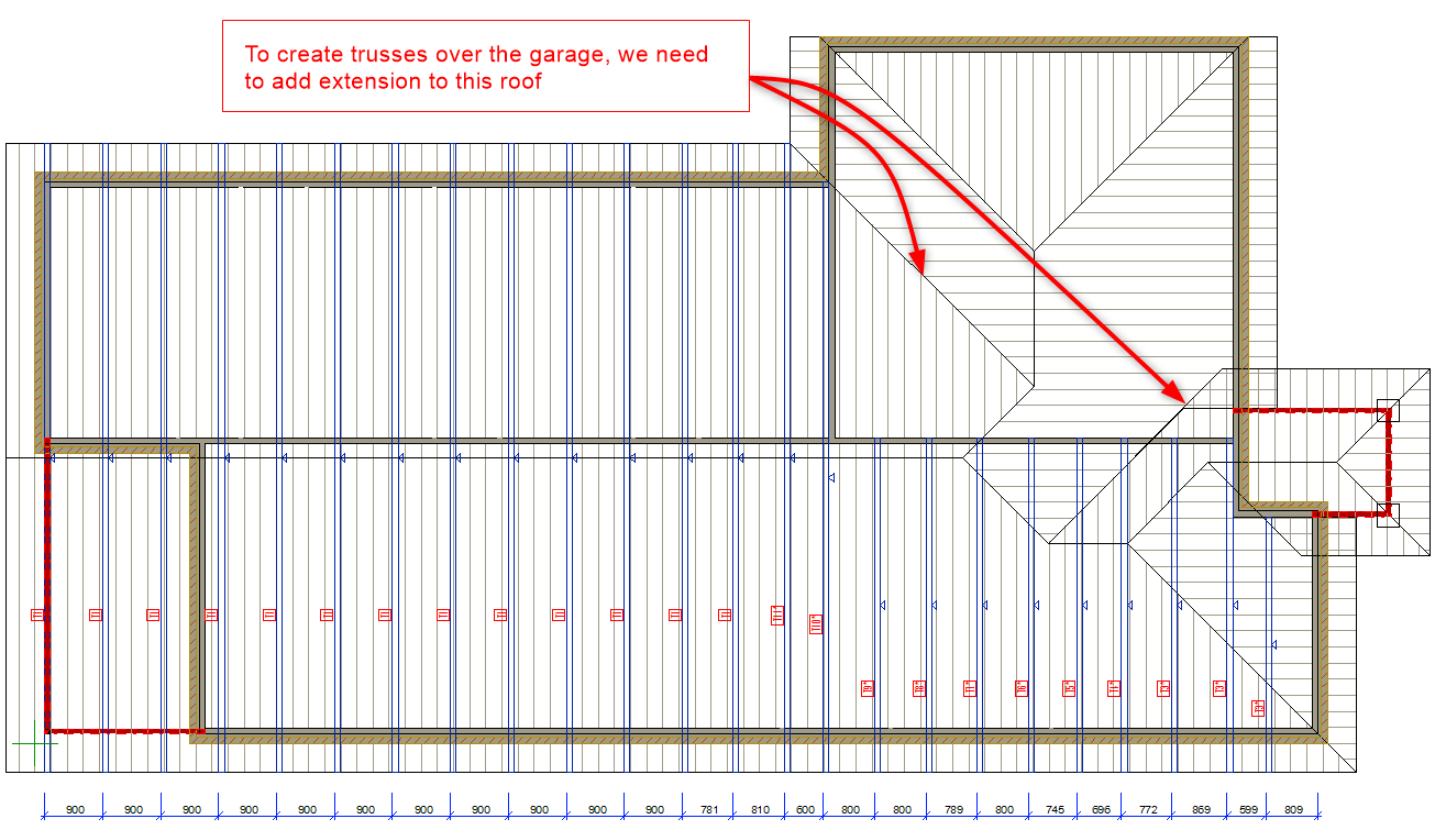 Roof plane can be extended and or Clipped (cut) as well, to define the extent to the trusses. Clipped (Cut) roof can be merged later by selecting both roof then Right click and form the contextual menu click on Merge