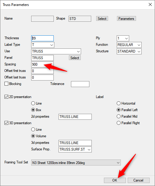 Now Vertex prompts to define the ‘Truss line points’, this means the extent that the truss will be spaced out across the building.