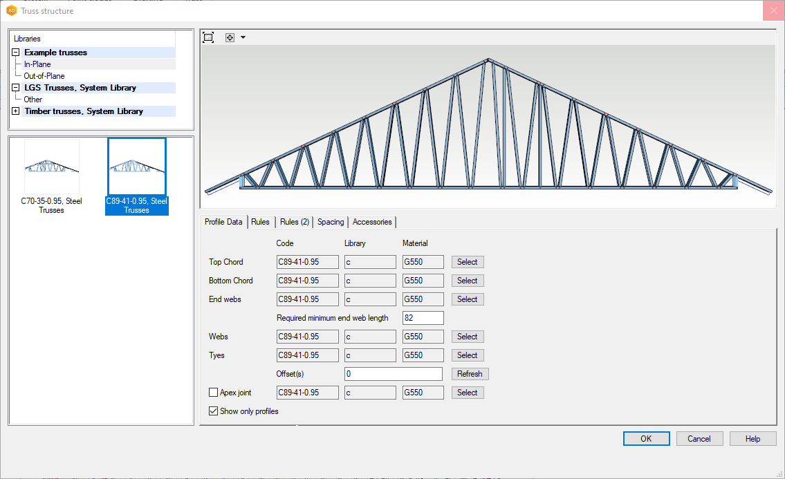 - In the Truss Structure dialog box select the appropriate truss library. Ensure the dialog box is filled out correctly.
