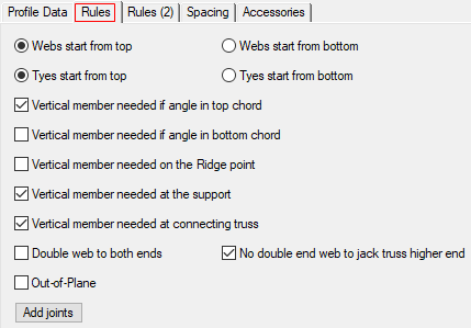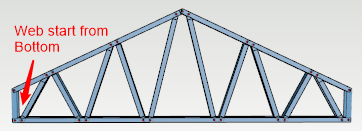- No turn face direction after mid-point (floor truss) : Floor trusses are typically flat. Direction rules are same for all webs.
