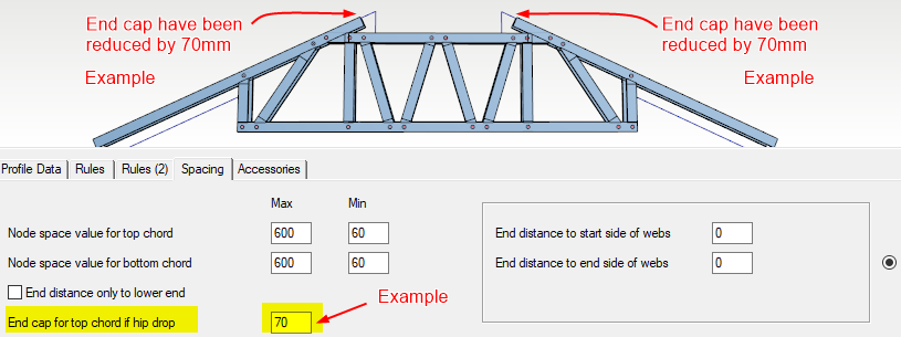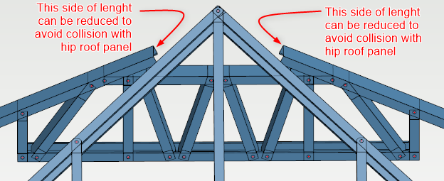 - End cap for top chord if hip drop : End of the top chord can be reduced to avoid collision with hip roof panel