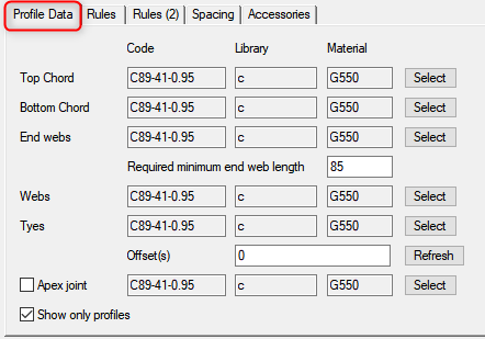 - Top Chord, Bottom Chord, End webs, Webs and Ties are profiles : Select correct profile and material.