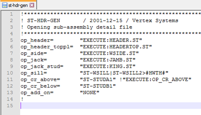 - Add the line “op_cr_below= "ST-STUDB1"” for cripples below sill