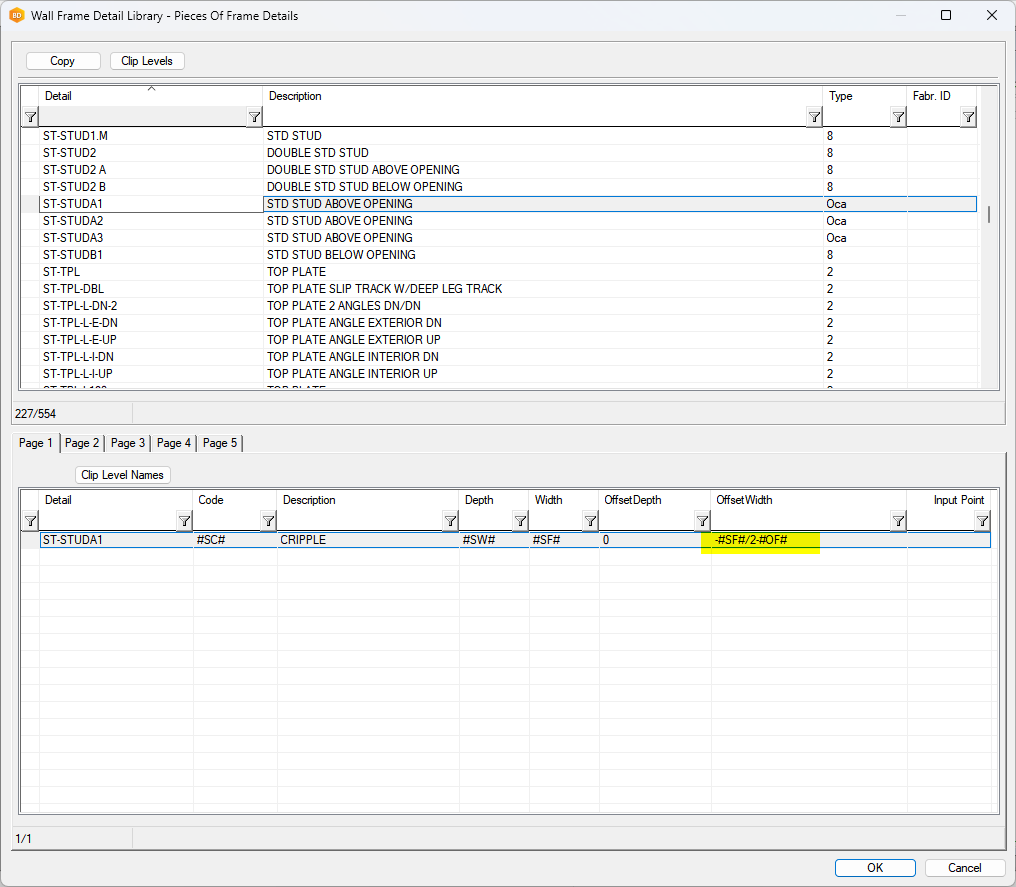 - Under OffsetWidth, you can change the offset. In this case, #SF# is the stud flange and #OF# is a stud offset gap, usually set to 1 or 2mm.