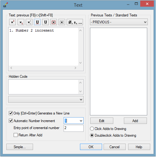 When you are adding a text, you can enable the automatic number increment. Previously, the first number in the text was always incremented. Now, you can select which number in the text field is to be incremented.