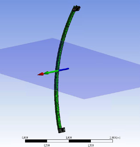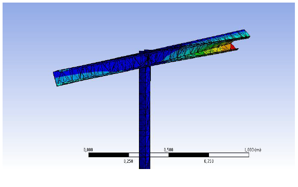The behavior of top chord was also verified with ANSYS. Top chord of back-to-back truss bends around its shear center under loading. The shear center of C shaped profile is located outside the cross section. Loading is applied to the top flange when eccentricity of shear center cause torsion stress to the profile. According to the ANSYS test, cross section won’t twist around the shear center when the loading of top chord is applied through roof laths. In that case torsional stress is insignificant and it does not need to be taken into account in the member design.
