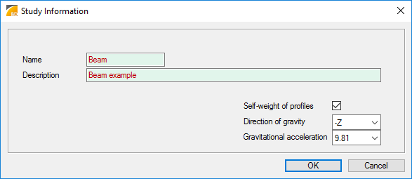 Fill the study information to the dialog.