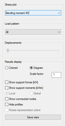Solver shows different kind of stress plots. Plots can be drawn in colored display or diagram.