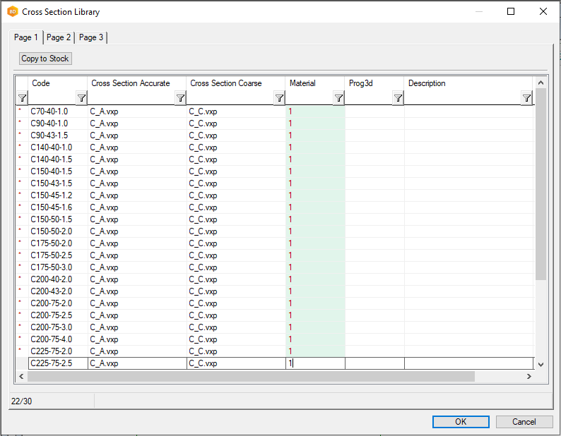 Right-click and select Edit Profile Library > Edit cross section properties. The text file "profprop" will open, choose your text file editor, for example Notepad.