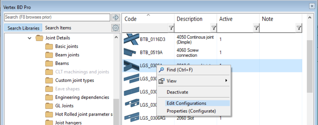 Right-click on a joint you wish to configure and choose Edit Configurations.