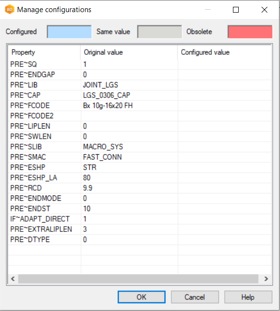 For service holes, large service holes, web holes, triple holes from the "Area Tools" tree and "Tools" tree in the connection details browser you also need to set their size to "-" (minus character) under Edit Configurations to force read from the profprop file