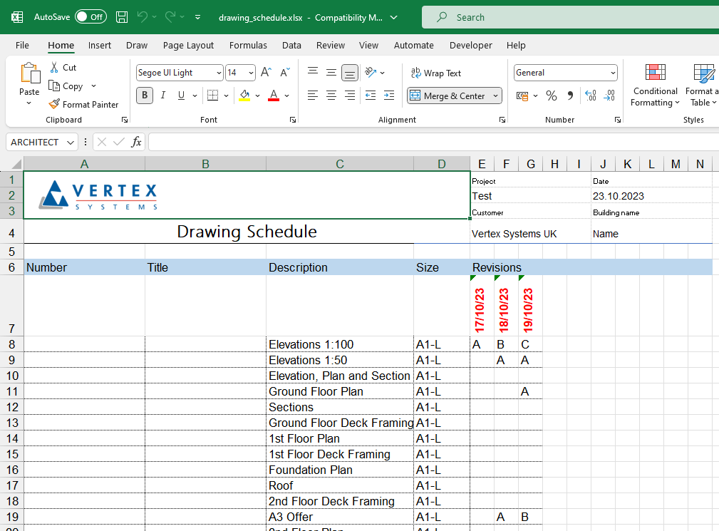 Improved drawing schedule to Excel including revisions
