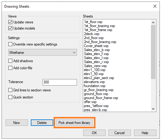 Add sheet from library