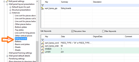 If, for example, you turn on siding pieces and show them on layer 231: