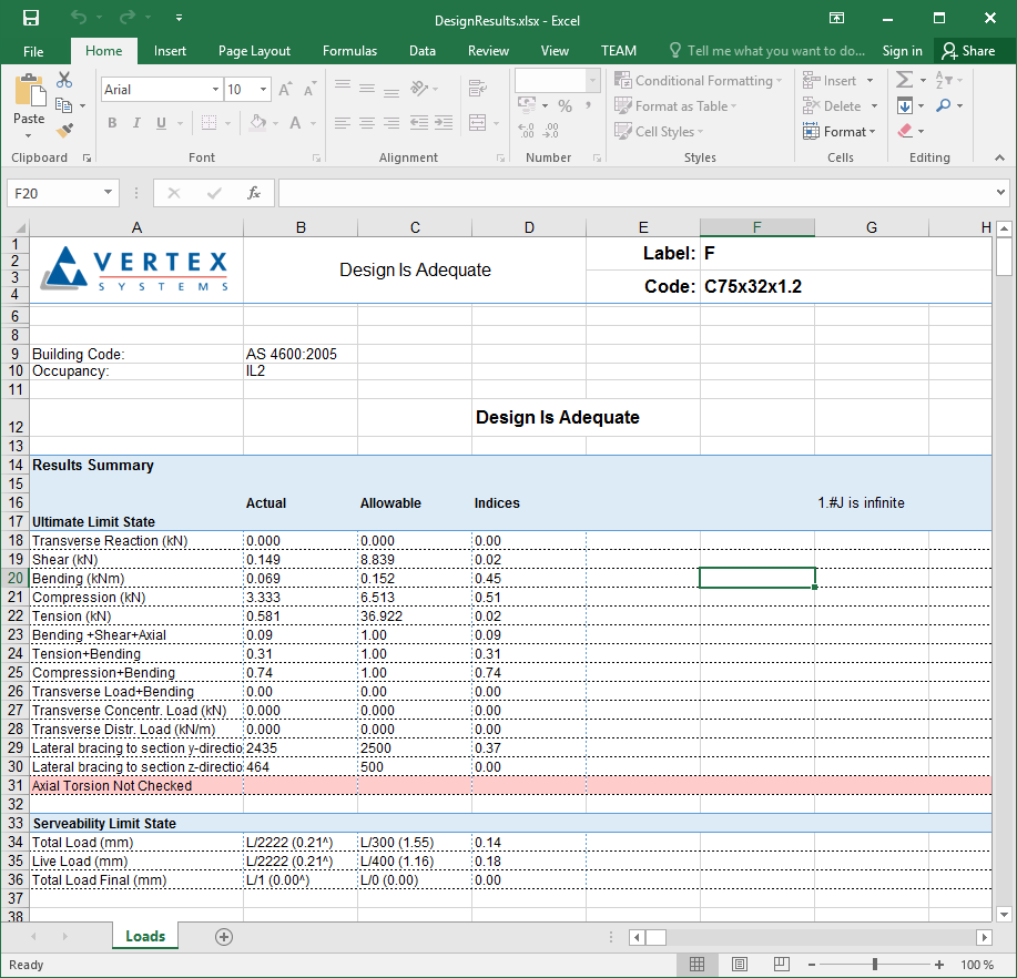 Design results can checked after the capacity check is done.