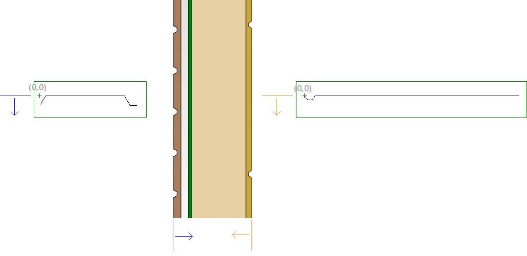 You can create a grooved surface on a wall layer by using a 2D pattern drawn in a texture file to model a cladding, for example. The surface of the layer is machined with the pattern in the architectural model. The texture file can be set for an existing structure, or you can set the file for a layer in the wall layer library or in the wall library. You can use the texture files included in the basic software delivery or you can draw the pattern yourself. The texture files of the software supplier are located in system/macros folder: