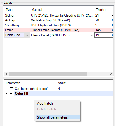 For wall layers: