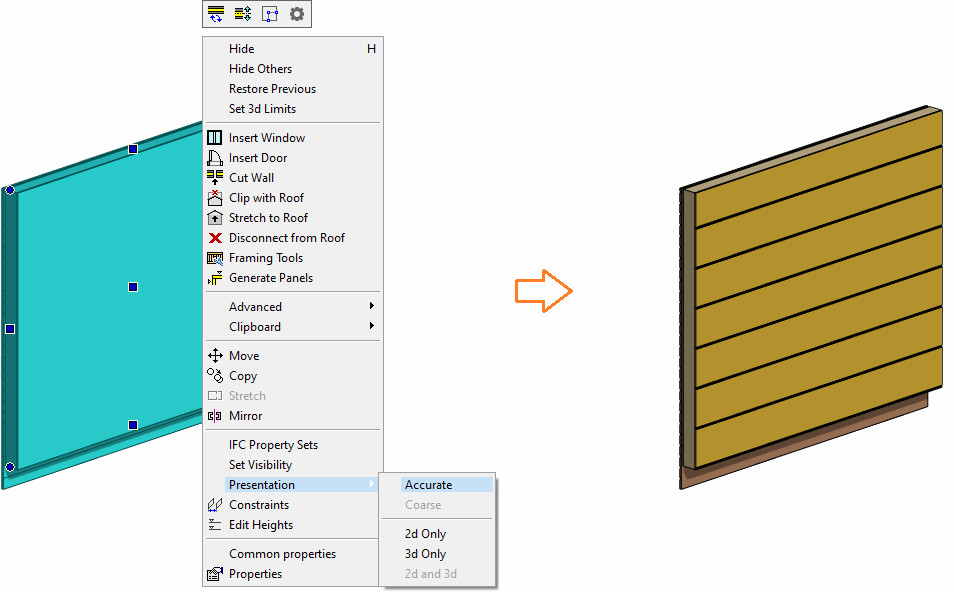 Select the wall and then select Presentation > Accurate from the right-click menu.