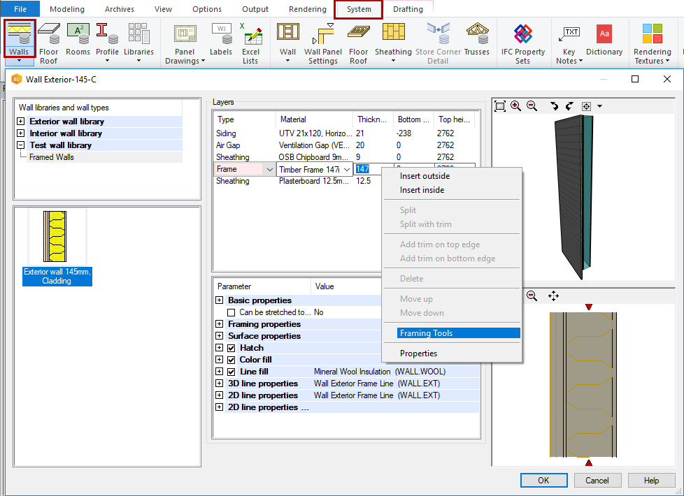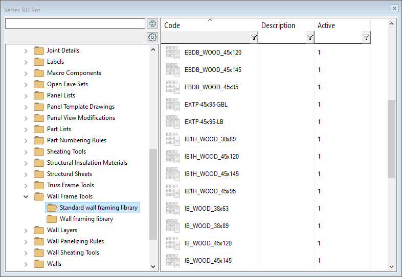 Select the folder System Libraries and the library type Wall Frame Tools.
