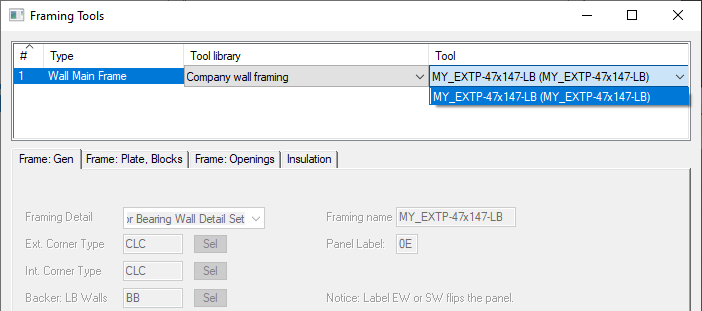 Edit the wall frame tool library to create a new tool. You can add new tools to your custom tool library by copying them from the system library.