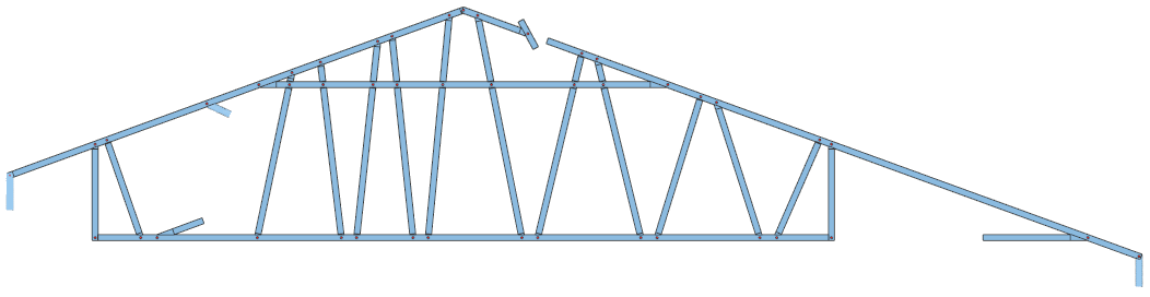 A truss template presents the different situations for forming connections between truss members. When you add parts to a truss envelope, the program generates the parts according to the shape of the envelope and selects suitable connections according to the function of the parts.