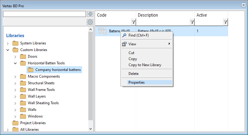 Select the library Horizontal battens. You will see the tools in the library in the right-side browser pane.