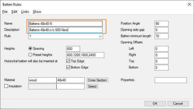 More detailed information (Framing Tools: Horizontal battens) can be found in the user manual (see Vertex BD Help).