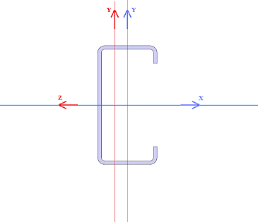 The local coordinate system of the cross section in Beams and Frames FEA is shown in the cross section figure. The local coordinate system of the cross section