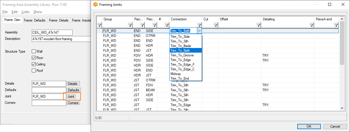 Example: You want the joist to connect to the header. Look at the JOIST framing detail and see that it as has the Joint ID "JST". The HEADER detail has the Joint ID "HDR", so a joint needs to made JST -> HDR.