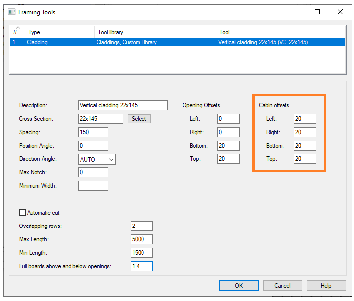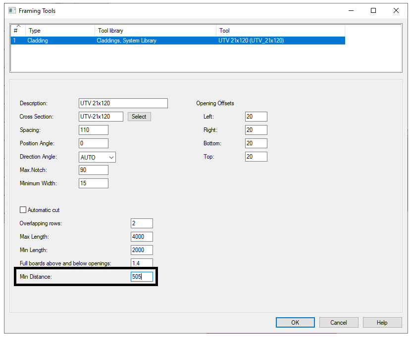- Set Length = LONG (1) and Cut Mode = TOP in new Length-page for the part in framing details