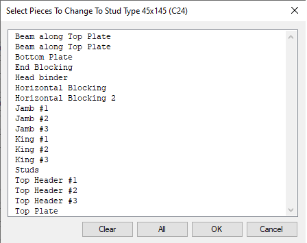 There is now a button to easily assign the same profile code to multiple fields in the wall framing tool. Previously this was available in the Imperial versions only. The layout of the framing tools has also been improved
