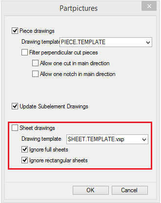 You can generate part drawings for sheathing boards by panels or by structure (if frame is added directly to structure). If you don't need part drawings for full or rectangular sheets, those can be filtered.