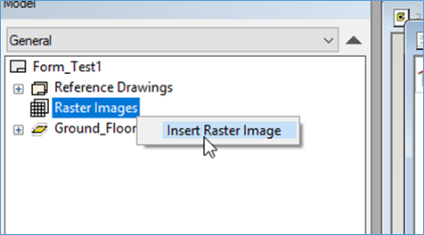 2. Select 'Raster image' in the model browser. Right click and form the contextual menu select 'Insert Raster Image'