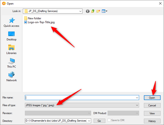 3. In the pop-up ‘file browser window’, find the logo image you want to add to the Title block template and click ‘Open’, Pay attention to the correct file format.