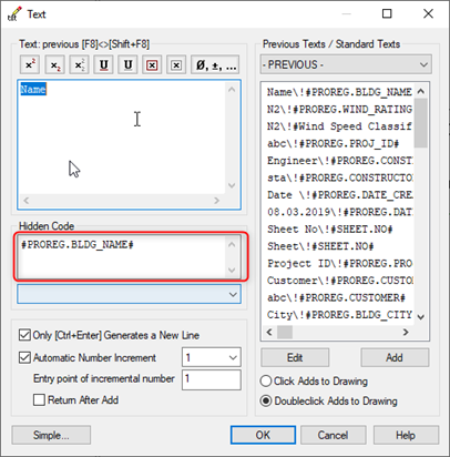 Any information that you want, to be filled automatically form the Project Data card, the text must have a hidden code that refer to the PROREG database.