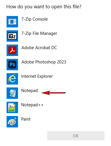 Select Notepad or WordPad when prompted for an application to use when opening the file.