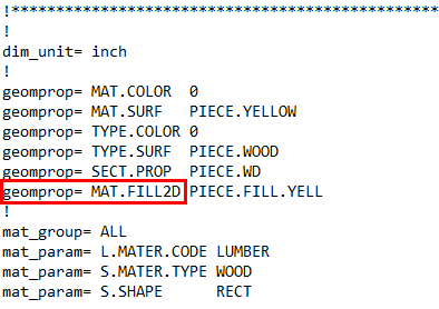 To assign a color fill (2D) to the profile type, add the line geomprop= MAT.FILL2D, followed by the fill color.