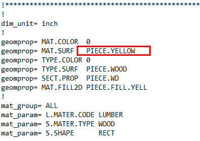 To assign a material texture map to the profile type, edit the line geomprop= MAT.SURF, followed by the texture map.