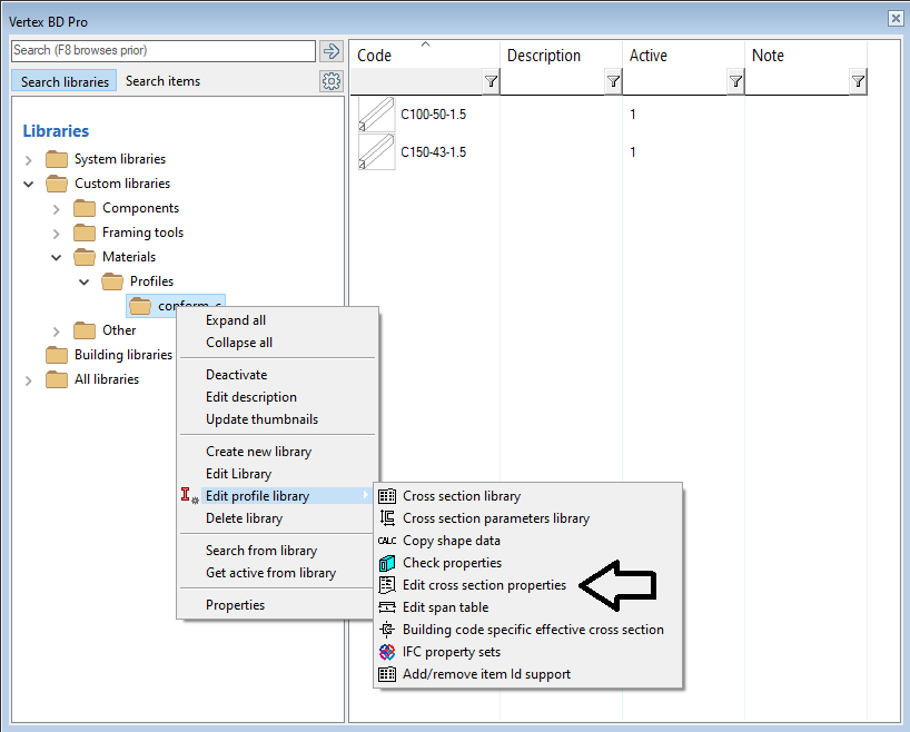 Right click on the profile library to edit and go to Edit Profile Library > Edit Cross Section Properties