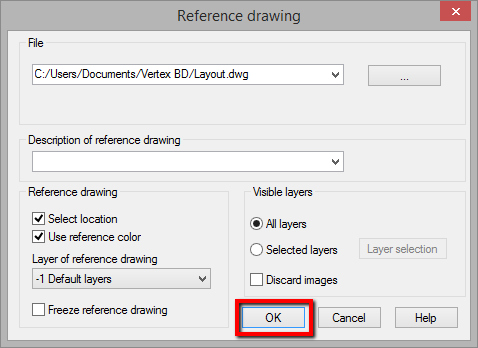 - Click ... button to select a reference drawing file to be imported.