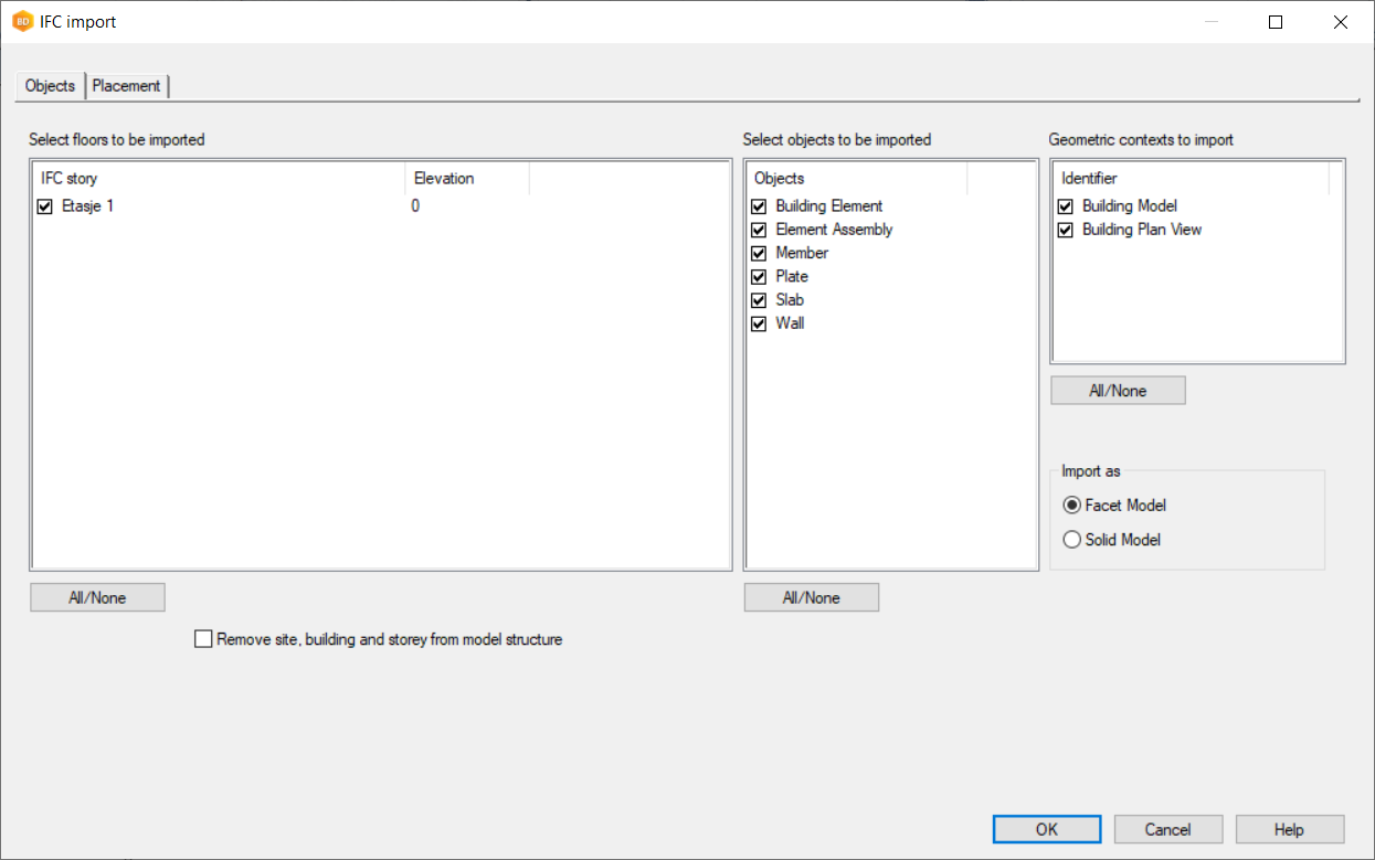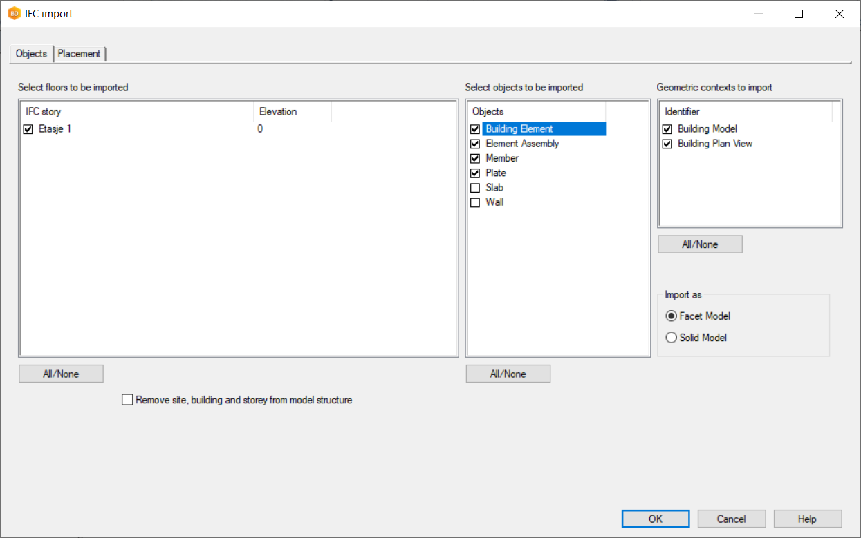 You can import an IFC model as a reference model by dragging and dropping the IFC into the Vertex BD window. If you import an IFC as a reference model, you will loose BIM information in the conversion. Use this method if you only need the imported model as a reference. You will not be able to edit the model after conversion without the Advanced Modelling (G4) add-on module.