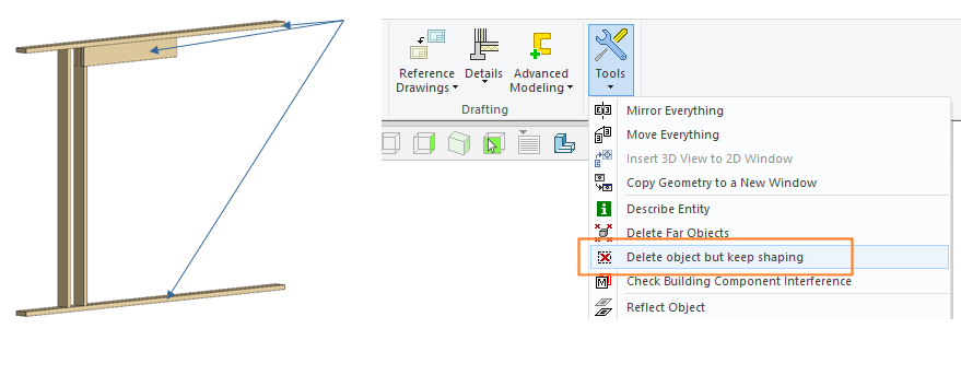 Remove the plates and lintels by selecting Modeling | Tools > Delete object but keep shaping.