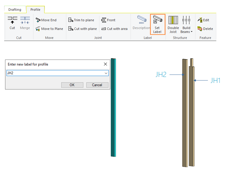 It is possible to set a specific label for panel parts (profiles) that are of a certain standard cross section, length and material. This can be achieved in the following way: